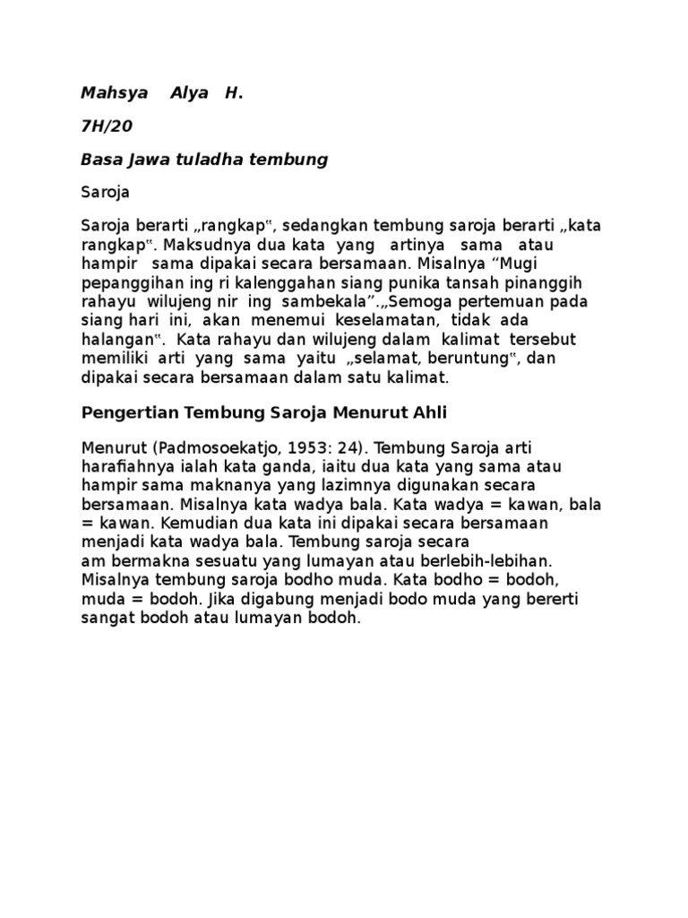Tuladha tembung saroja ing ngisor iki yaiku. We did not find results for: Maybe you would like to learn more about one of these? Check spelling or type a new query.